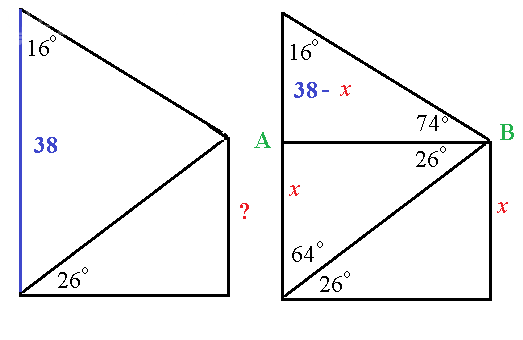 x*(tg64 ° +tg16 ° )=38*tg16 °