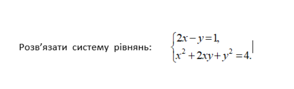 [m]\left\{\begin {matrix}2x–y=1\\x^2+ 2xy+ y^2 =4.\end {matrix}\right.[/m] ⇒ [m]\left\{\begin {matrix}2x–y=1\\(x + y)^2 =2^2.\end {matrix}\right.[/m] ⇒