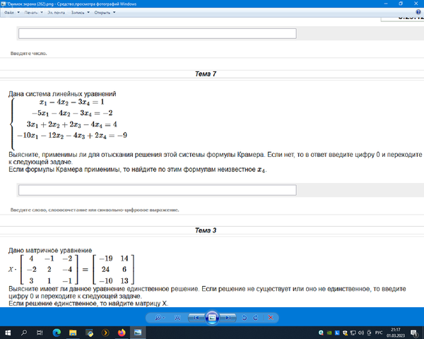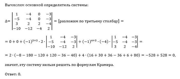 Выясните, применимы ли для отыскания решения этой системы формулы Крамера. Если нет, то в ответ введите цифру 0 и переходите к следующей задаче.