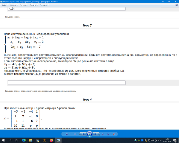 Выясните, является ли эта система совместной неопределенной. Если эта система несовместна или совместна, но определенна, то в ответ введите цифру 0 и переходите к следующей задаче.