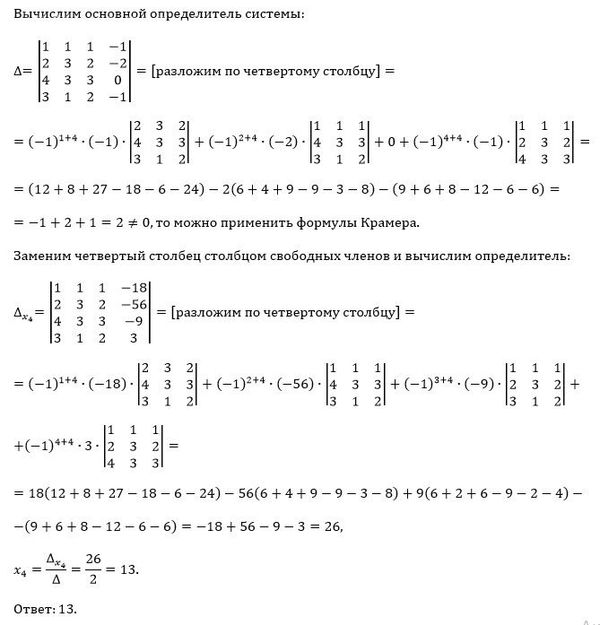 Если формулы Крамера применимы, то найдите по этим формулам неизвестное x4