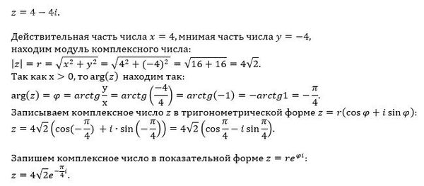 Перевести из алгебраической в тригонометрическую и показательную форму: z = 4-4i