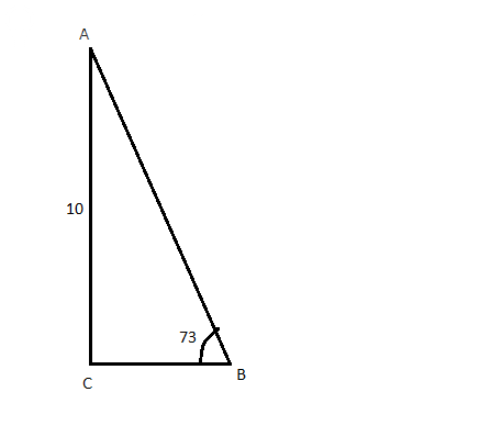 BC = AC/tg B = 10/tg 73° ≈ 10/3,27 ≈ 3,06