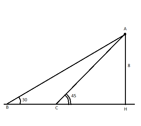 Дано: AH = 8 см; ∠B = 30°; ∠C = 45°