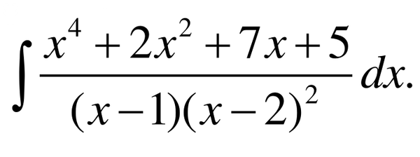 ∫ (x^4+2x^2+7x+5)/(x-1)(x-2)^2 dx