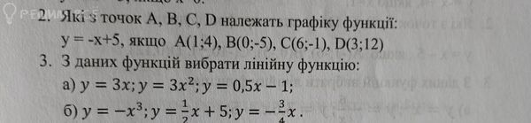 З. З даних функщй вибрати линйну функцио: а) у = Зх; у = 3xy=05x-1; 1 3 б) у = —х%; у = =х + 5;у = —=х.