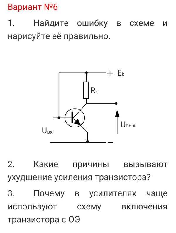 Ответы на 2 и 3 вопросы вроде знаю, но хотелось бы проверить. А со схемой не очень понимаю. Единственное что вижу так это то, что транзистор не по ГОСТу нарисован и после Rк не стоит узел.