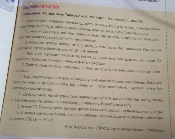"Денсаулькты сактау ез колынызда." - Дерігер сізді емдейді, бірак денсаулыкты сактау оз колынызда.