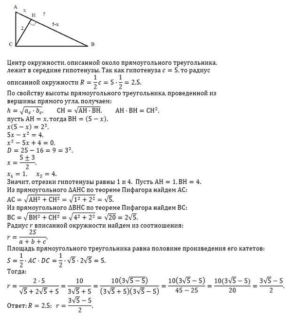 О т в е т. R=2,5; r=[m]\frac{3\sqrt{5}-5}{2}[/m]