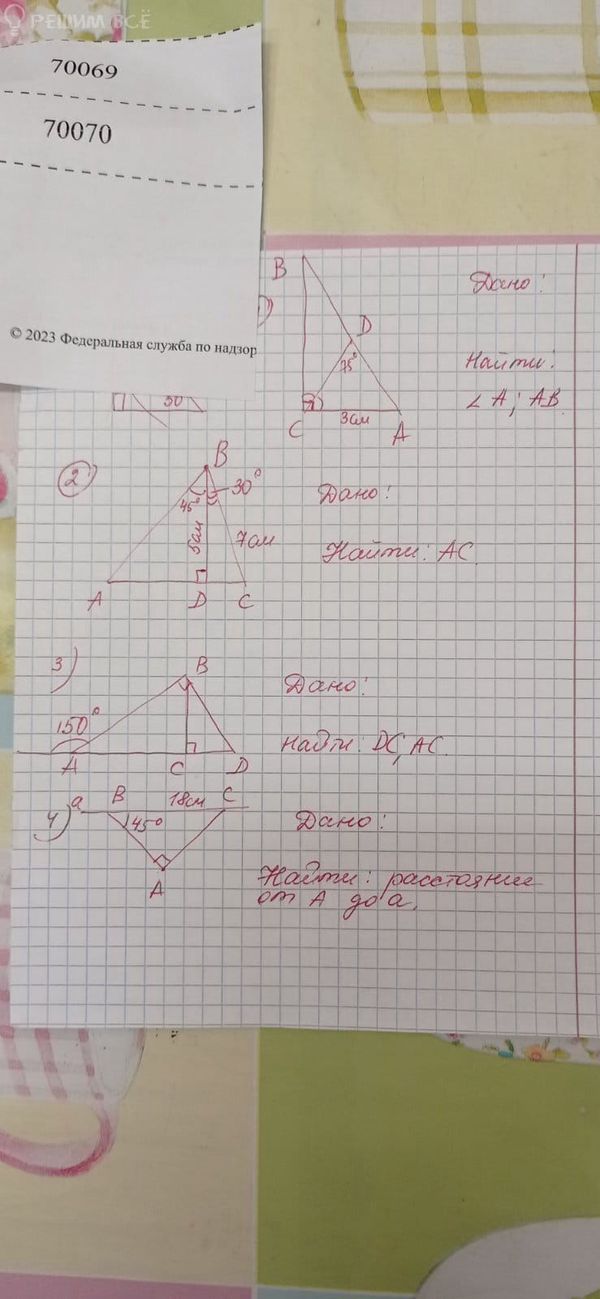 Нет никаких длин отрезков для решения задачи... Поэтому только углы отметила Применить свойство катет, лежащий против угла в 30 градусов равен половине гипотенузы...
