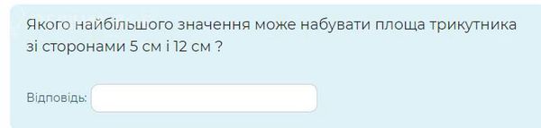 S_( Δ)=(1/2)a*b*sin ∠ C Наибольшее значение sin ∠ C=1 ∠ С=90 ° Наибольшая площадь у прямоугольного треугольника S=(1/2)12*5=30 кв см