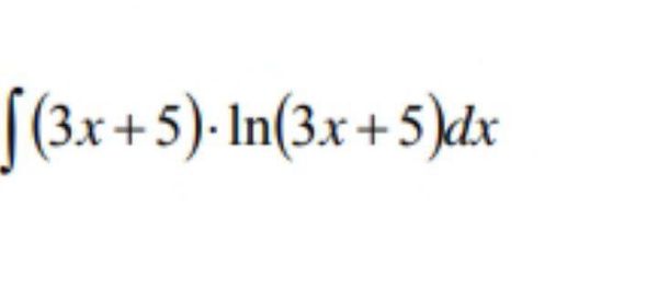 ∫ (3x+5)ln(3x+5)dx=(ln(3x+5))*((3x^2/2)+5x)- ∫((3x^2/2)+5x)*(3dx/(3x+5)=