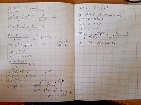 Решить неравенство (x^3–x^2–x+1)/(x+1) + 4/(x^2–2x+1) ≤ 5