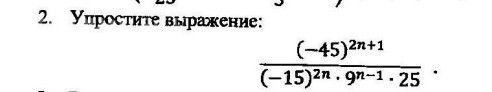 Упростите выражение: (-45)^(2n+1) / (-15)^(2n)*9^(n-1)*25