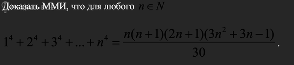 [m]1^4=\frac{1\cdot (1+1)\cdot (2\cdot 1+1)\cdot (3\cdot 1^2+3\cdot 1-1)}{30}[/m] - верно, т. к[m]1=\frac{1\cdot 2\cdot 3\cdot 5}{30}[/m]