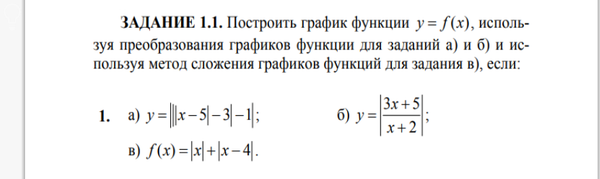 ЗАДАНИЕ 1.1. Построить график функции у = f(х), используя преобразования графиков функции для заданий а) и б) и используя метод сложения графиков функций для задания в), если: ...