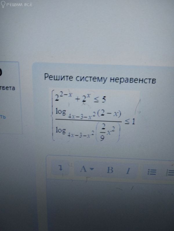 Заметим, что 2 неравенство содержит дробь, причем в числителе и в знаменателе стоят логарифмы с одинаковым основанием 4x-3-x^2