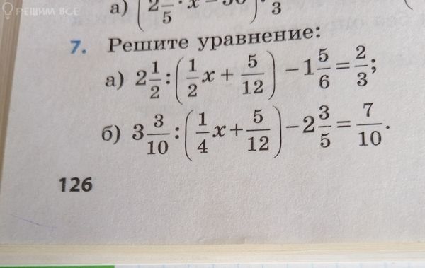 б) [m]3 \frac{3}{10}: (\frac{1}{4} \cdot x + \frac{5}{12}) - 2\frac{3}{5} = \frac{7}{10}[/m]