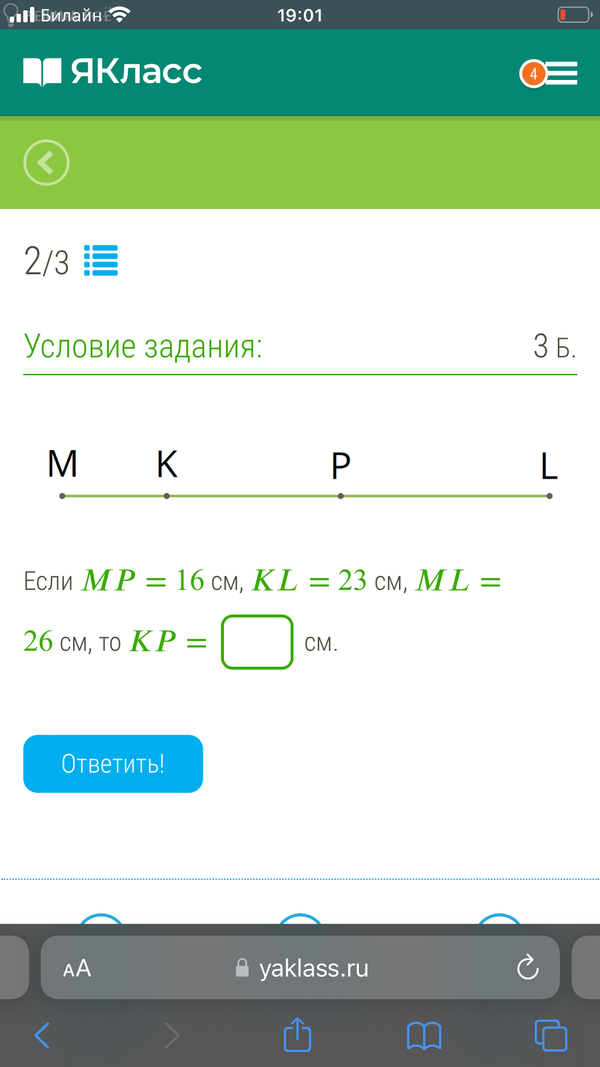 Условие задания: 3 Б. ы_2.png Если ????????= 16 см, ????????= 23 см, ????????= 26 см, то ????????= см. Ответить!