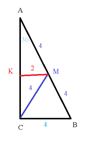 Чтобы найти расстояние от точки М до стороны АС проводим перпендикуляр МК