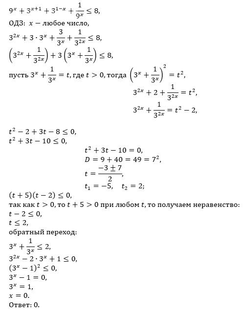 9^x+3^(x+1)+3^(1-x) + 1/9^x ≤ 8