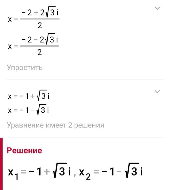 x²+2x+4=0 a=1, b=2, c=4 D=b²-4ac D=2²-4×1×4= 4-16=-12 2 фото – действительные корни 3 и 4 фото – комплексные корни