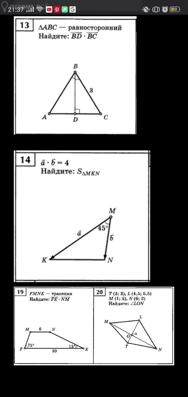 Треугольник равносторонний все стороны [red]3[/red], все углы 60 ° BD- биссектриса, значит ∠ DBC=30 ° По определению vector{BD}*vector{BC}=|vector{BD}|*|vector{BC}|*cos ∠ DBC=3*[red]3[/red]*cos30 ° =3*3*sqrt(3)/2=[b]9*sqrt(3)/2[/b]