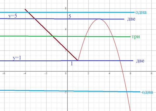 Постройте график функции у = 2 - х, при х ≤1, -x2 + 6х4, при х > 1 и определите, при каких значениях m прямая y=m имеет с графиком ровно две общие точки