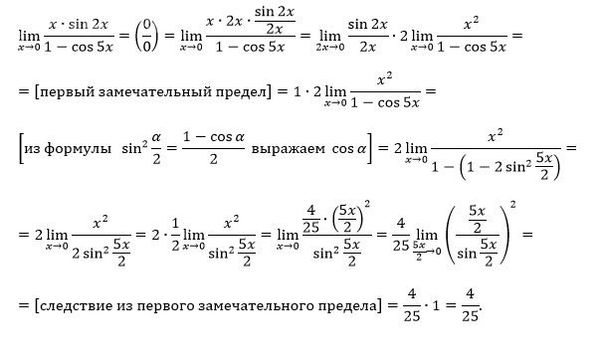 lim_(x→0) xsin2x / 1-cos5x
