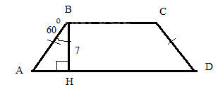 3) В равнобедренной трапеции ABCD проведена высота BН, которая равна 7. Угол АВН равен 60°. Найти сторону CD.