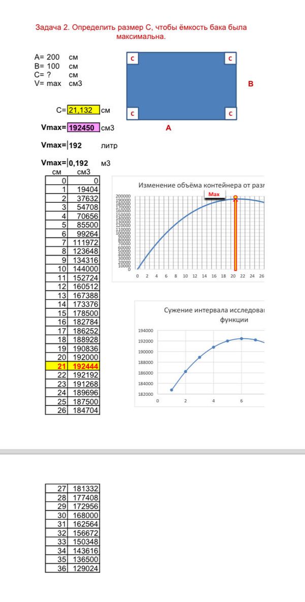 Получили: C = 50 - 50*sqrt(3)/3 ≈ 21,1325, тогда объем: