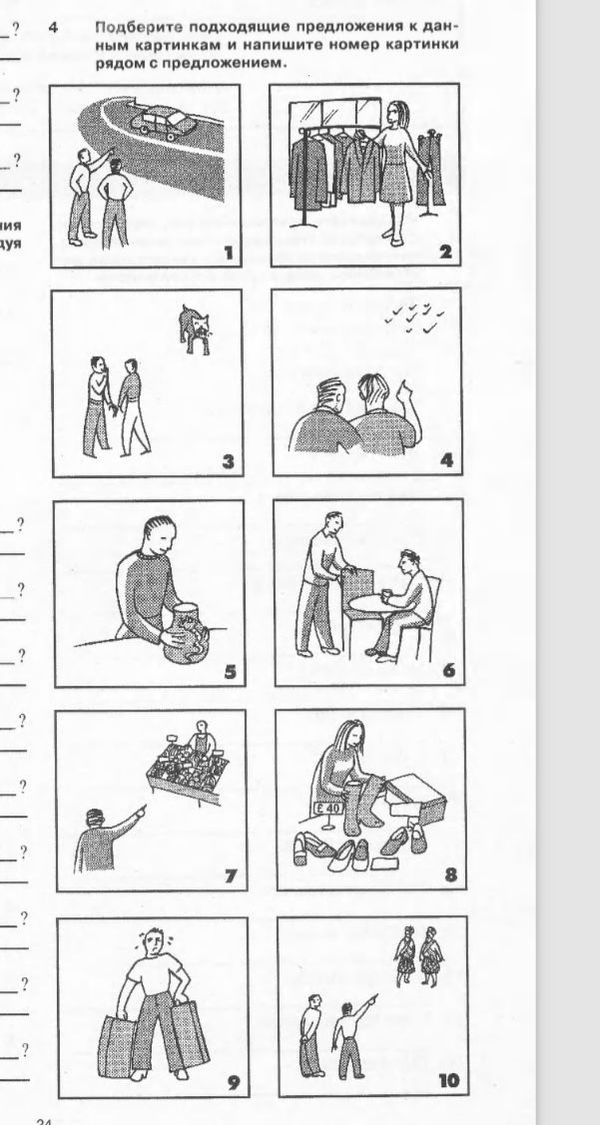 Английские язык, подобрать подходящие предложения по картинкам