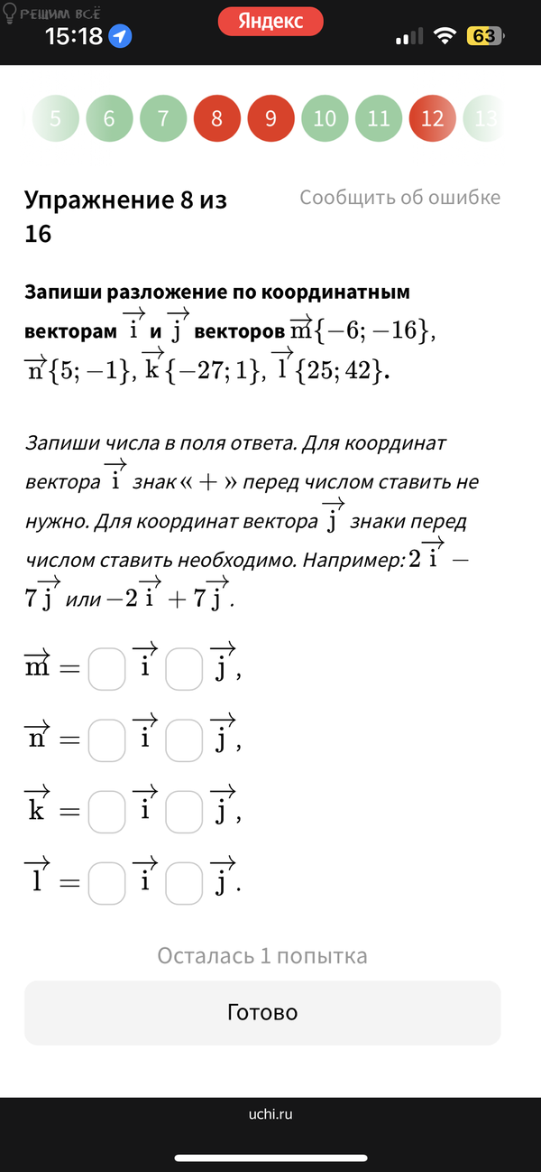 Запиши разложение по координатным векторам i и j