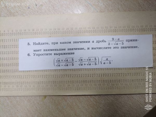 Очевидно, значение будет наименьшим при [m]\sqrt{a-5} = 0[/m],