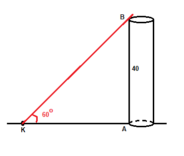 AK = AB/tg (BKA) = 40/tg 60° = 40/sqrt(3) = 40sqrt(3)/3 ≈ 23,1 м