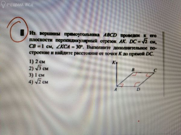Из вершины прямоугольника ABCD проведен к его плоскости перпендикулярный отрезок АК. DC...