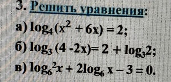 [b]х=6^(-3)[/b] или [b] х=6^2[/b]