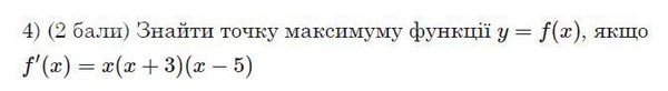 f'(x)=0: x(x+3)(x-5)=0, x=0 или х+3=0 или х-5=0, х=0, х=-3, х=5, x_(max)=0.