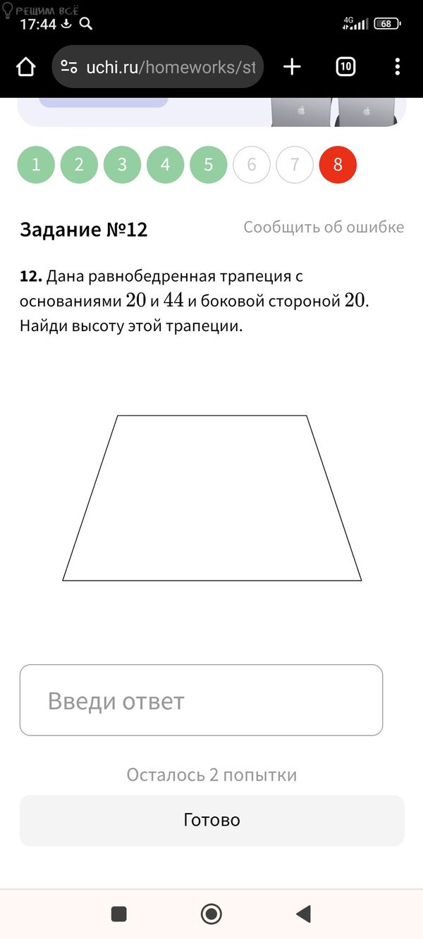 Из прямоугольного ΔАНВ по теореме Пифагора находим высоту трапеции ВН: