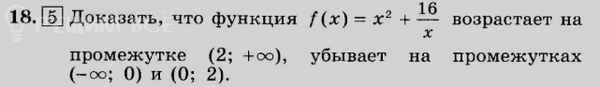 18. [5] Доказать, что функция \( f(x) = x^2 + \frac{16}{x} \) возрастает на промежутке (2; +∞), убывает на промежутках (-∞; 0) и (0; 2).