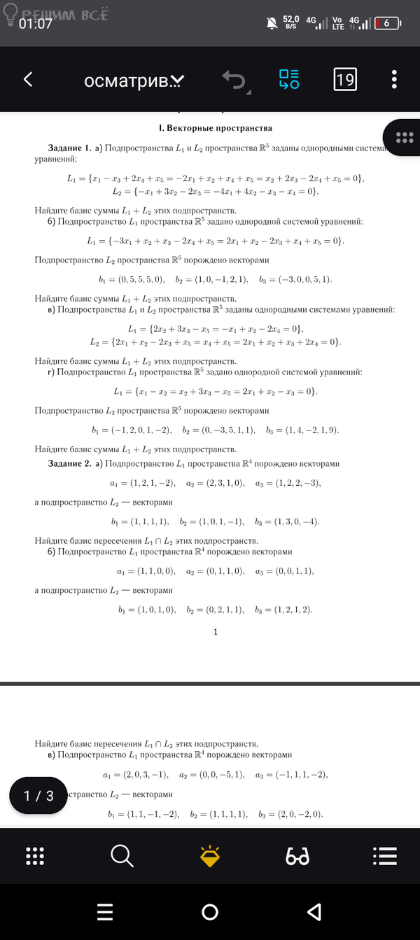 Задание 2. a) Подпространство L₁ пространства R⁴ порождено векторами