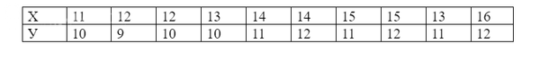 x_(1)=11 : p_(1)= 0,1 ( один раз встречается среди десяти значений)