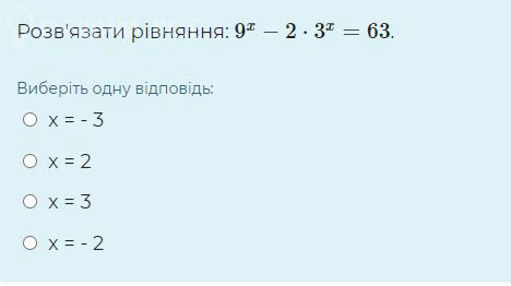 Замена переменной 3^(x)=y y^2-2y-63=0 - квадратное уравнение D=4+4*63=4*64 sqrt(D)=2*8=16 y_(1)=(2+16)/2=9 y_(1)=-7 3^(x)=9 x=2 3^(x)=-7 нет корней О т в е т. 2