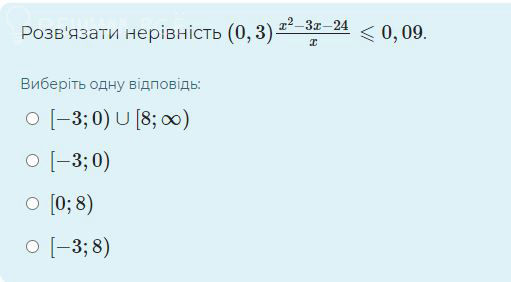 (x^(2)-3x-24)/x ≥ 2, (x^(2)-5x-24)/x ≥ 0, ((x+3)(x-8))/x ≥ 0, ____-___[-3]___+____(0)____-_____[8]____+_____ x ∈ [-3;0) ∪ [8;+ ∞ ). Ответ: 1.