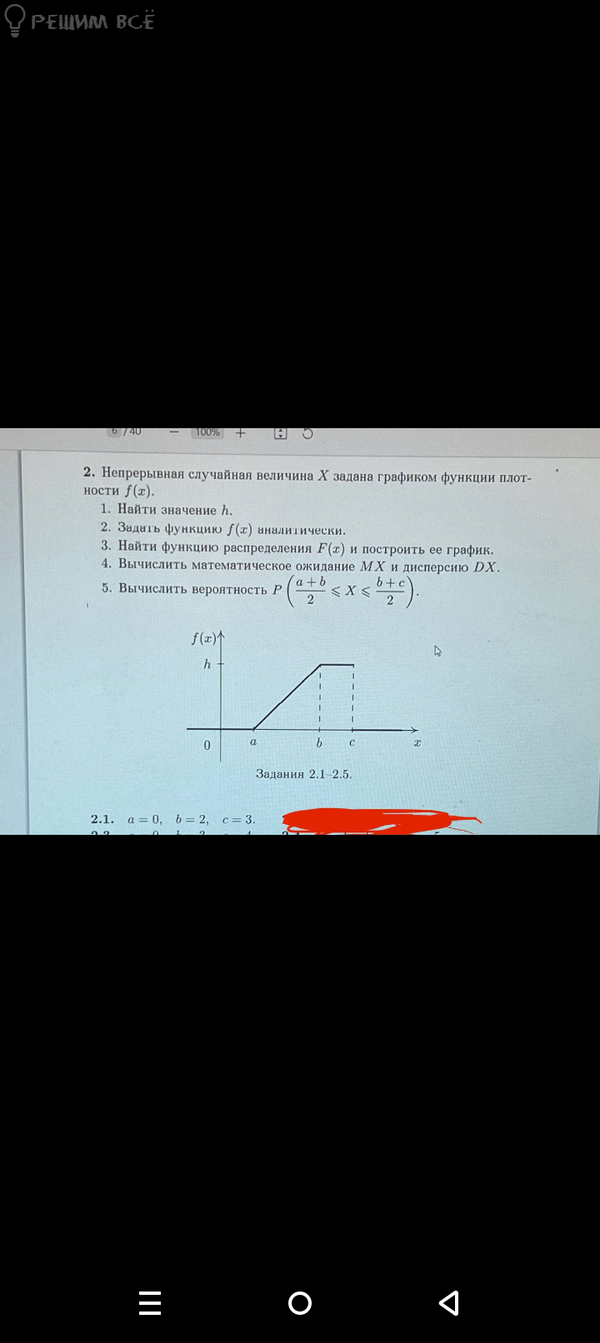 5. Вычислить вероятность P(a+b/2 <= X <= b+c/2)