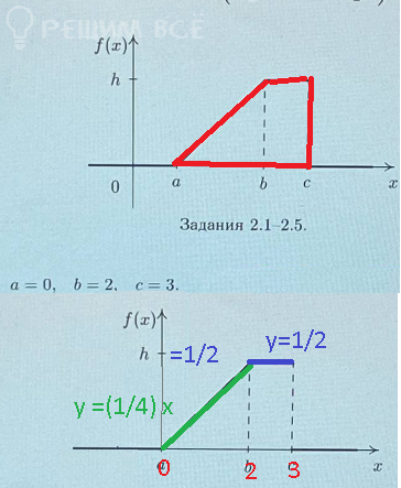 [m]f(x)=\left\{\begin {matrix}0, x ≤0\\\frac{1}{4}x, 0<x≤2\\\frac{1}{2}, 2<x ≤3 \\0, x > 3\end {matrix}\right.[/m]