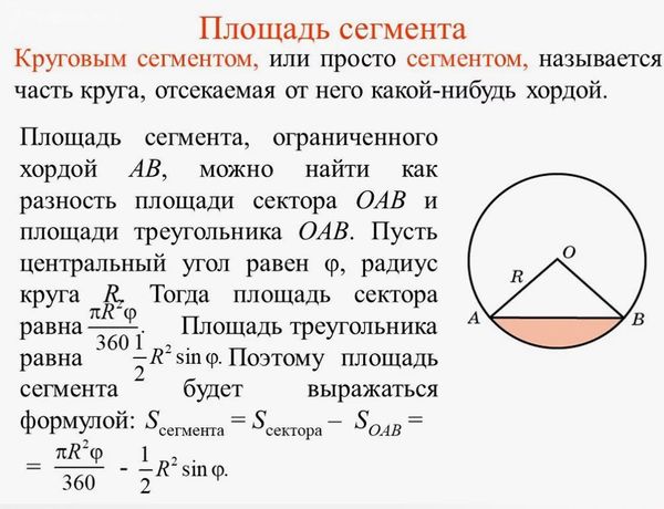 1) Найдите площадь кругового сегмента, если радиус круга равен 10 см., а градусная мера дуги данного сегмента равна 30°.