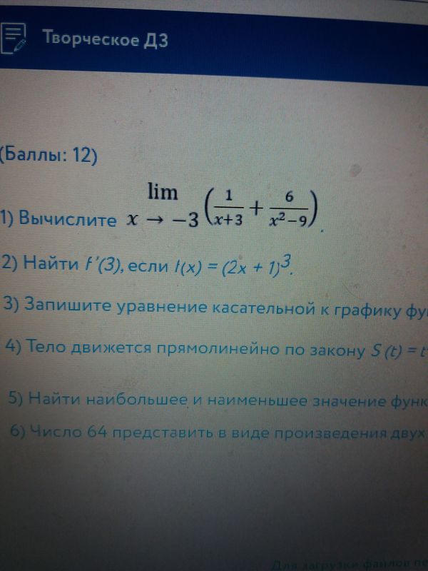 [m]lim_{ x→ -3}(\frac{1}{-3+3}+\frac{6}{(-3)^2-9})=\frac{1}{0}+\frac{6}{0} [/m]