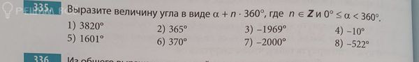 Выразите величину угла в виде о + п • 360°, где п є Z и 0° 5 а < 360°.