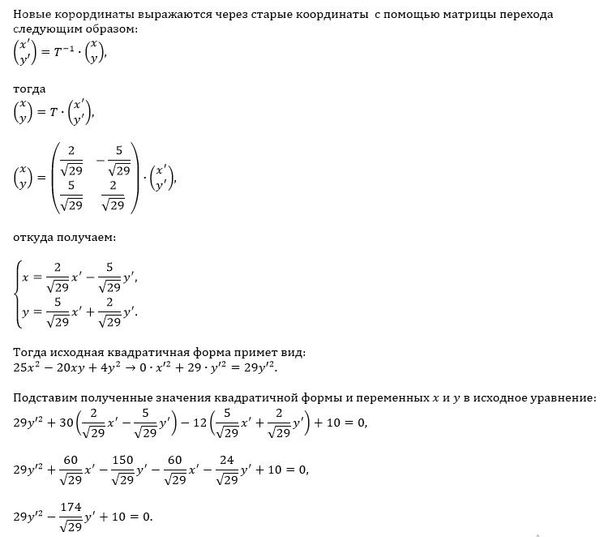 Исследование кривых второго порядка: Свести уравнение второго порядка к главным осям; определить тип линии; составить формулы преобразования переменных; сделать чертеж